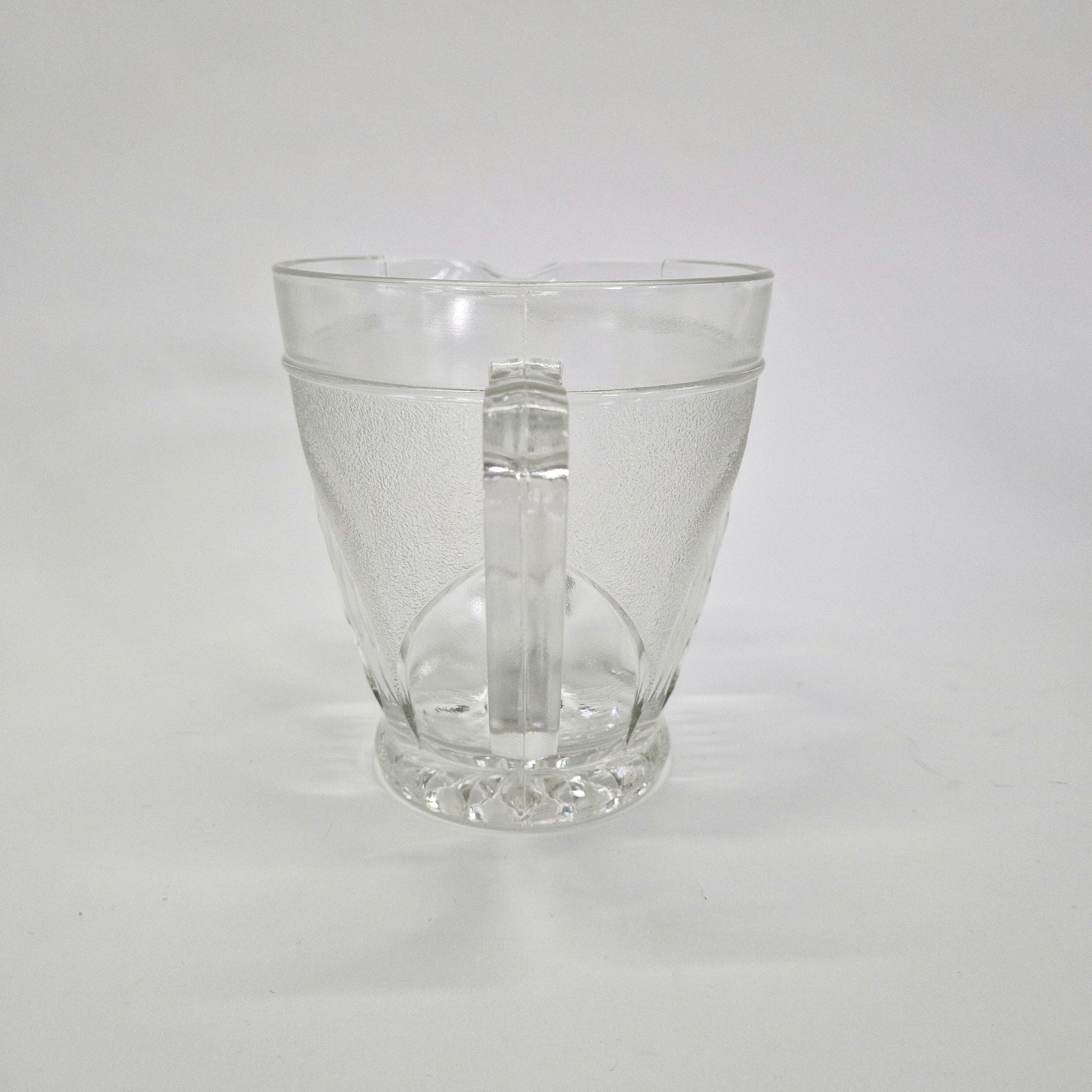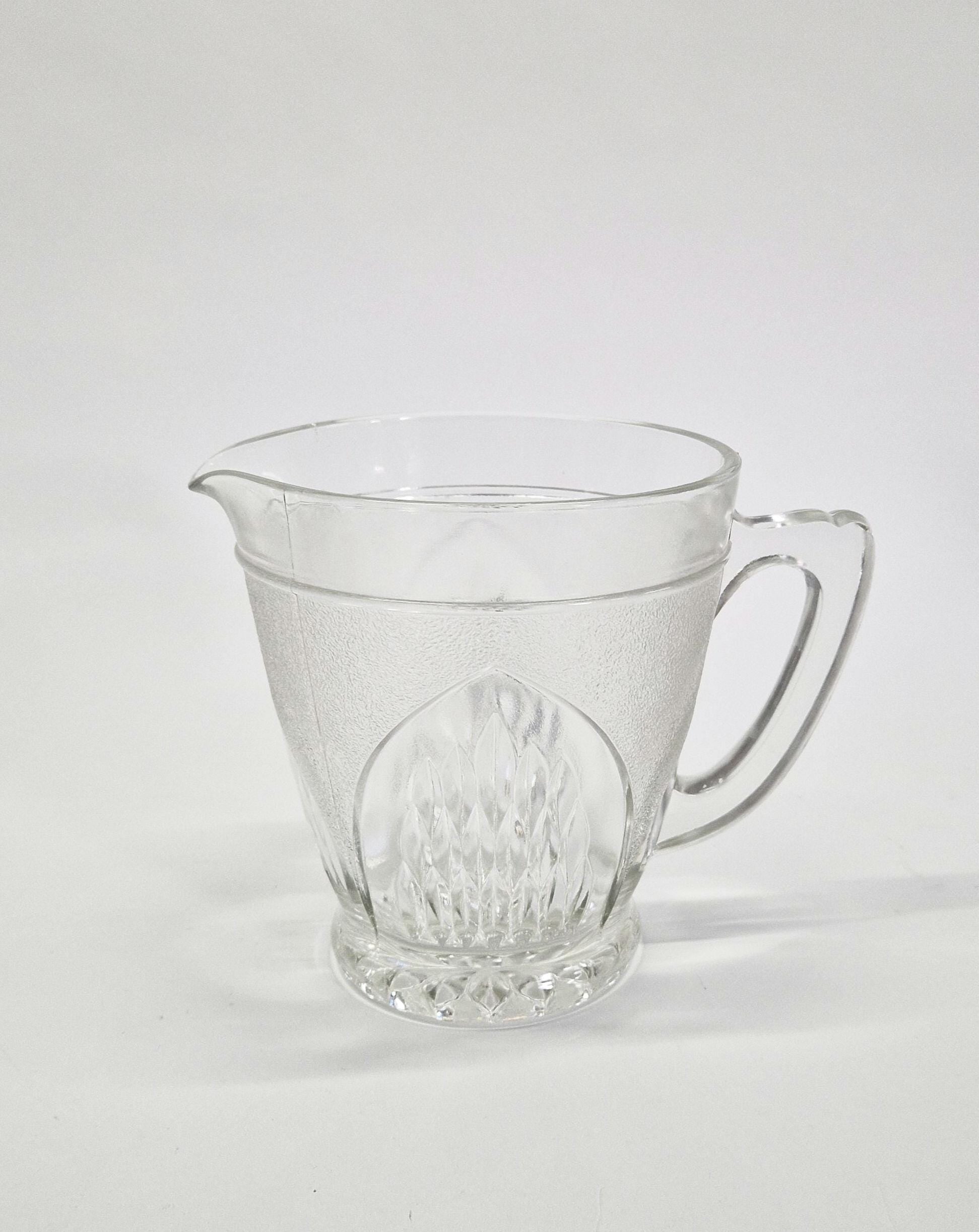 This jug is not only a practical kitchen item but also a collectible piece of historical significance. Its good condition and distinctive design make it a valuable addition to any vintage glassware collection. Whether used for serving beverages or displayed as a decorative piece, this jug embodies the elegance and craftsmanship of 1950s glassware.