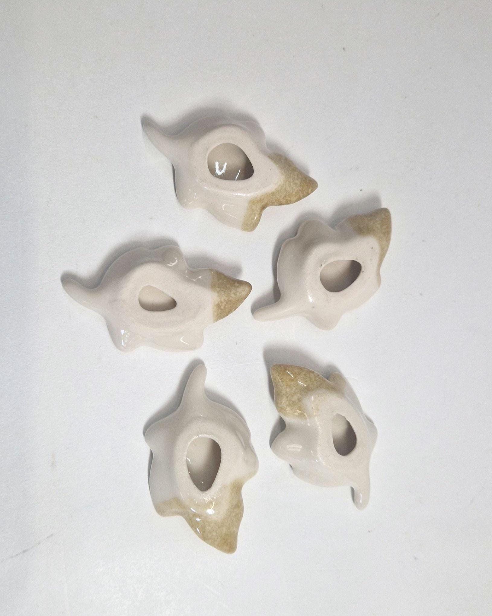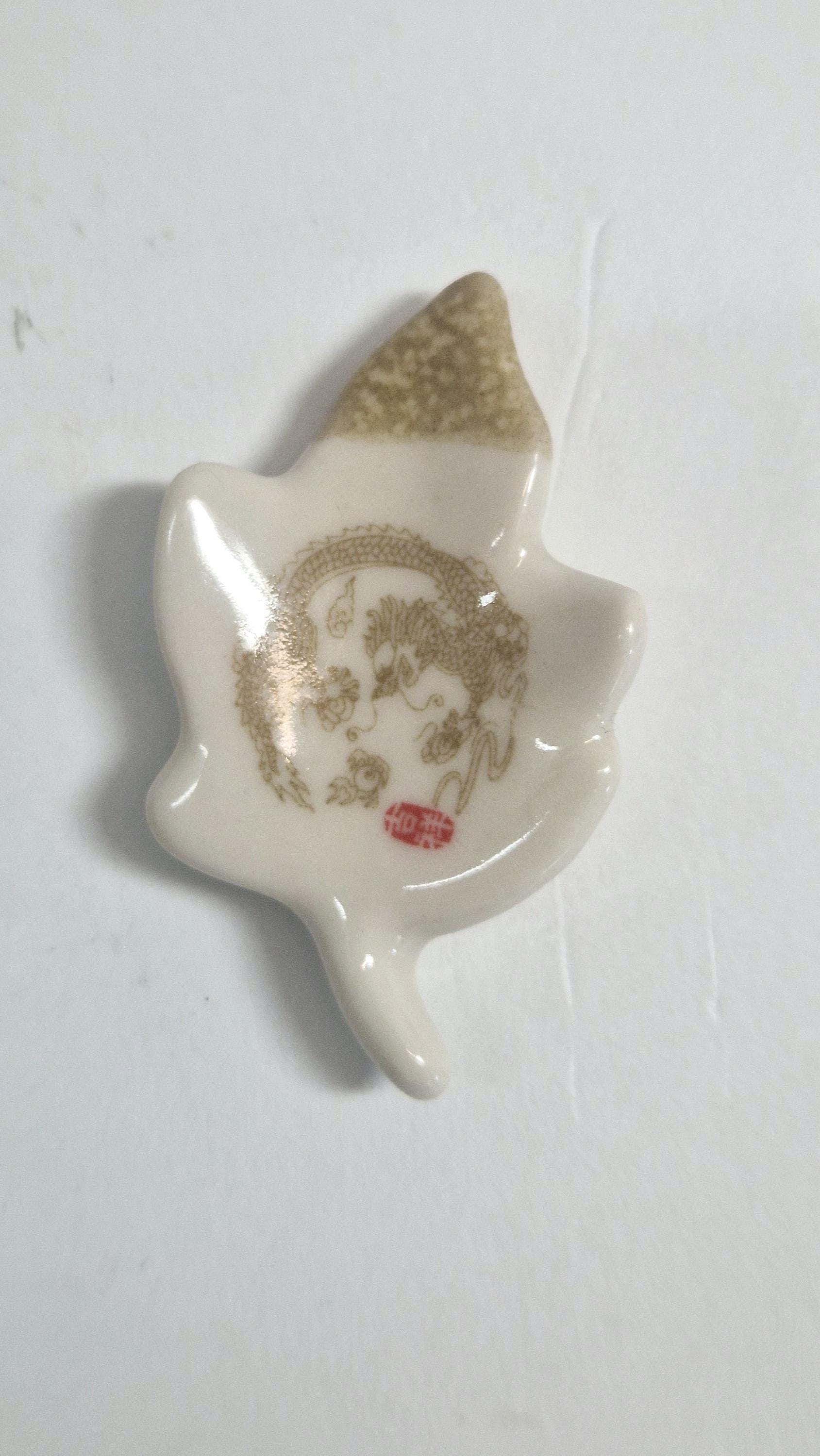 5 Chopstick Holders, Leaf Shaped with Dragon Design in Cream and Beige.