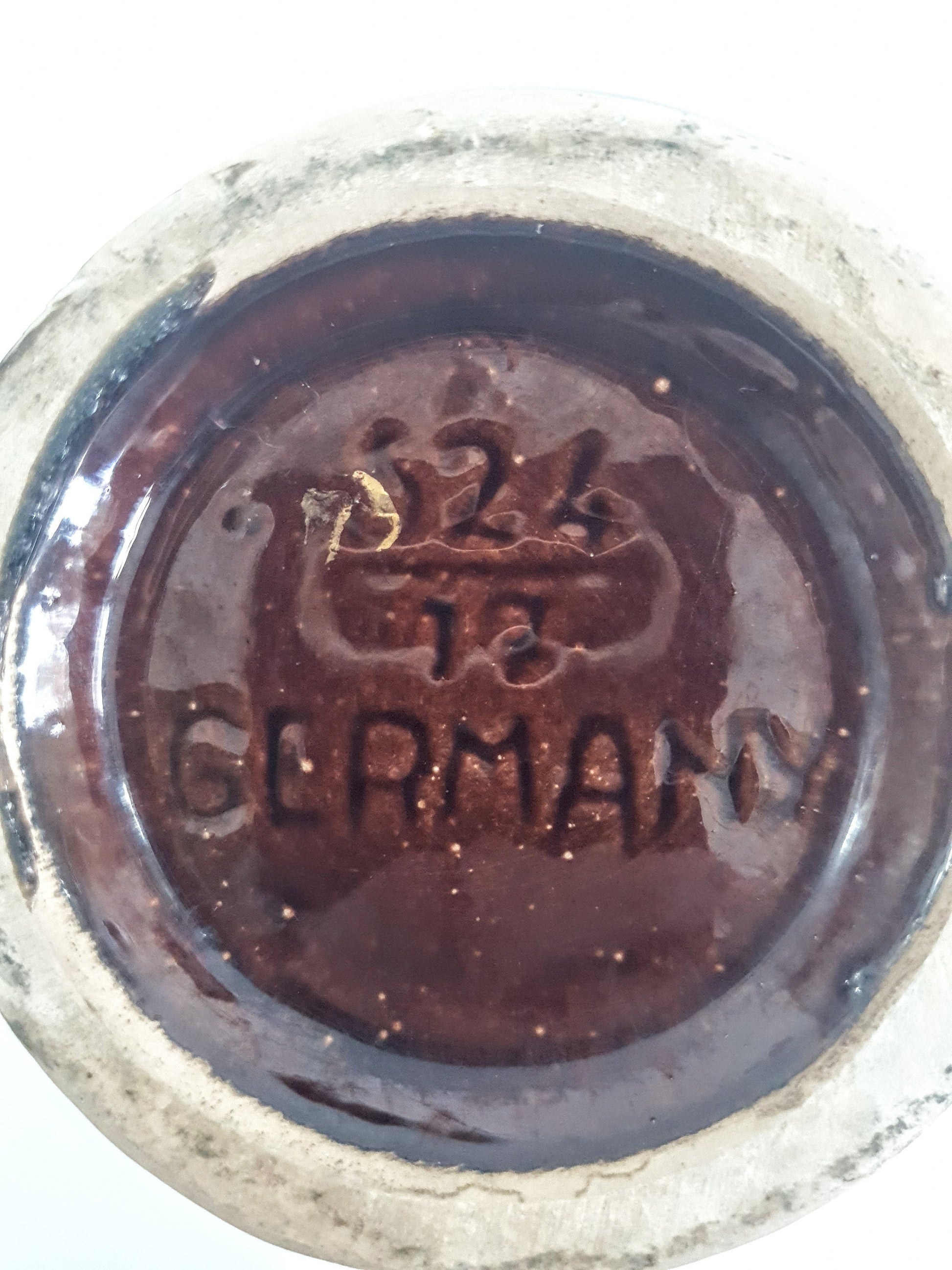 Vintage German jug vase in green and black dripware. Stamped on base is Germany 524/17 (over). Possibly produced by Bay Keramik Potteries during the 1980s.